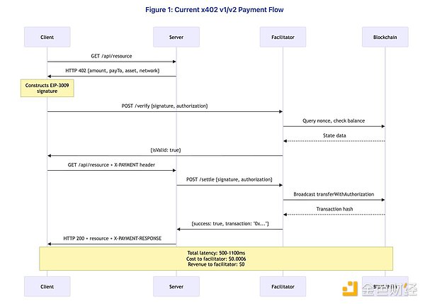 关键观察:该设计实现了加密支付验证,而无需商户处理私钥或直接管理区块链基础设施。结算在如Base(以太坊L2)等网络上进行,最终性约200毫秒,Gas成本低于0.0001美元。该协议看似简洁优雅,然而这种表面简洁性掩盖了几个在深入审视下才会显现的深刻架构问题。